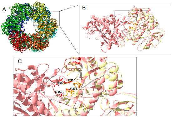 - Biasini, M.; Bienert, S.; Waterhouse, A.; Arnold, K.; Studer, G.; Schmidt, T.; Kiefer, F.; Cassarino, T.G.; Bertoni, M.; Bordoli, L.; et al. SWISS-MODEL: Modelling protein tertiary and quaternary structure using evolutionary information. Nucleic Acids Res. 2014, 42, W252–W258. [Google Scholar] [CrossRef] [PubMed]