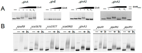 - Fink, D.; Weißschuh, N.; Reuther, J.; Wohlleben, W.; Engels, A. Two transcriptional regulators GlnR and GlnRII are involved in regulation of nitrogen metabolism in Streptomyces coelicolor A3(2). Mol. Microbiol. 2002, 46, 331–347. [Google Scholar] [CrossRef] [PubMed]