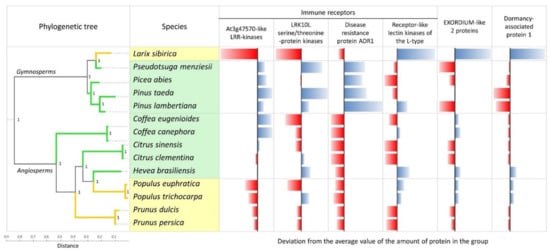 | Receptor-like lectin kinases of the L-type | Pseudotsuga menziesii | 1.1 × 10−7↑ | |||