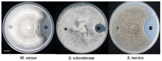Rice is the most staple food crop and feeds three billion people in the world, especially in Asia. Wherever it is grown, rice is susceptible to a variety of pathogens. Rice blast, which is caused by Magnaporthe oryzae, is one of the most serious rice diseases worldwide, has occurred in >80 countries, and caused yield losses of nearly 30% every year []. Currently, the most common approaches to control rice blast are development of resistant cultivars and application of chemical fungicides. Generally, it takes a long time to develop disease-resistant varieties, and the physiological races of M. oryzae vary frequently. In addition, the overuse of chemical fungicides to control rice blast has caused fungicide resistance, environmental pollution, and threatens human health. Application of bioactive agents to control plant diseases is more attractive and has significant potential in the future.