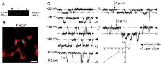 - Li, C.; Rezania, S.; Kammerer, S.; Sokolowski, A.; Devaney, T.; Gorischek, A.; Jahn, S.; Hackl, H.; Groschner, K.; Windpassinger, C.; et al. Piezo1 forms mechanosensitive ion channels in the human MCF-7 breast cancer cell line. Sci. Rep. 2015, 10, 8364. [Google Scholar] [CrossRef]
