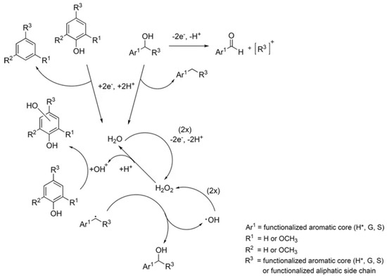 - Lee, K.; Moon, S.-H. Electroenzymatic oxidation of veratryl alcohol by lignin peroxidase. J. Biotechnol. 2003, 102, 261–268. [Google Scholar] [CrossRef]