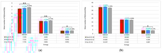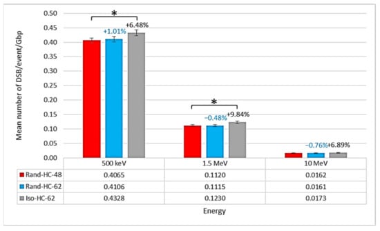 - Meylan, S.; Incerti, S.; Karamitros, M.; Tang, N.; Bueno, M.; Clairand, I.; Villagrasa, C. Simulation of early DNA damage after the irradiation of a fibroblast cell nucleus using Geant4-DNA. Sci. Rep. 2017, 7, 11923. [Google Scholar] [CrossRef] [PubMed]