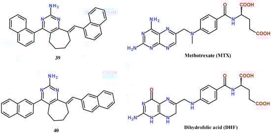 - Raimondi, M.V.; Randazzo, O.; La Franca, M.; Barone, G.; Vignoni, E.; Rossi, D.; Collina, S. Dhfr inhibitors: Reading the past for discovering novel anticancer agents. Molecules 2019, 24, 1140. [Google Scholar] [CrossRef] [PubMed] [Green Version]