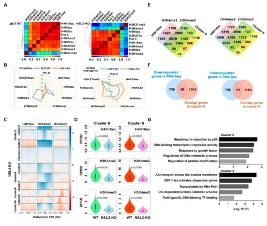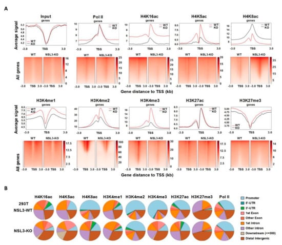 2.5. Redistribution of Histone H4 Acetylation and Histone H3 Methylation by NSL3-KO Was Observed in the Genome