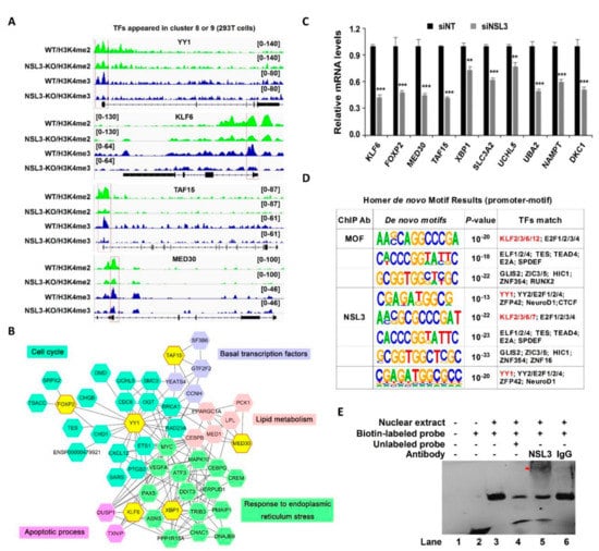 2.3. YY1 May Be a Potential Target Gene of the NSL HAT Complex
