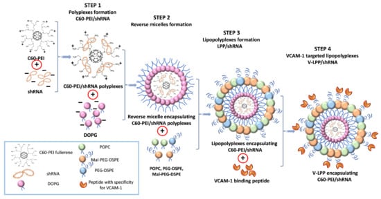 The schematic representation of the preparation procedure of VCAM-1 targeted lipopolyplexes is shown in
