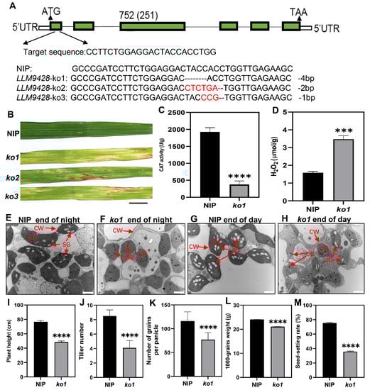 APA StyleLiao, Y., Ali, A., Xue, Z., Zhou, X., Ye, W., Guo, D., Liao, Y., Jiang, P., Wu, T., Zhang, H., Xu, P., Chen, X., Zhou, H., Liu, Y., Wang, W., & Wu, X. (2022). Disruption of LLM9428/OsCATC Represses Starch Metabolism and Confers Enhanced Blast Resistance in Rice. International Journal of Molecular Sciences, 23(7), 3827. https://doi.org/10.3390/ijms23073827