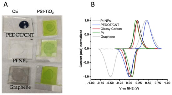 - Marchini, E.; Caramori, S.; Bignozzi, C.A.; Carli, S. On the Use of PEDOT as a Catalytic Counter Electrode Material in Dye-Sensitized Solar Cells. Appl. Sci. 2021, 11, 3795. [Google Scholar] [CrossRef]