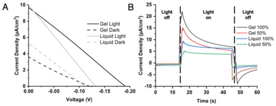 2.2. Comparison of Liquid and Gel Electrolyte Composition on PSI-SSC Output and Efficiency