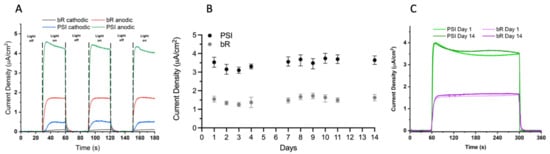 - Chellamuthu, J.; Nagaraj, P.; Chidambaram, S.G.; Sambandam, A.; Muthupandian, A. Enhanced photocurrent generation in bacteriorhodopsin based bio-sensitized solar cells using gel electrolyte. J. Photochem. Photobiol. B 2016, 162, 208–212. [Google Scholar] [CrossRef] [PubMed]