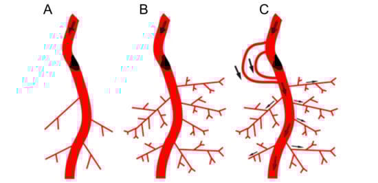 - Faber, J.E.; Chilian, W.M.; Deindl, E.; van Royen, N.; Simons, M. A brief etymology of the collateral circulation. Arter. Thromb. Vasc. Biol. 2014, 34, 1854–1859. [Google Scholar] [CrossRef] [PubMed] [Green Version]
