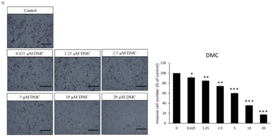 - Kim, J.H.; Shim, J.S.; Lee, S.K.; Kim, K.W.; Rha, S.Y.; Chung, H.C.; Kwon, H.J. Microarray-based analysis of anti-angiogenic activity of demethoxycurcumin on human umbilical vein endothelial cells: Crucial involvement of the down-regulation of matrix metalloproteinase. Jpn. J. Cancer Res. 2002, 93, 1378–1385. [Google Scholar] [CrossRef]
