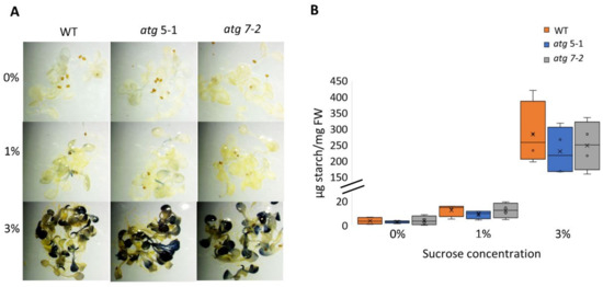 2.4. No Difference in Starch Accumulation between WT and atg Mutants under Sucrose Excess
