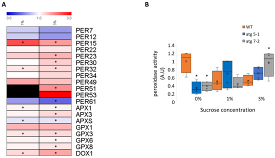 2.8. atg Mutants Display Higher Peroxidase Activity under Sucrose Excess Compared with WT