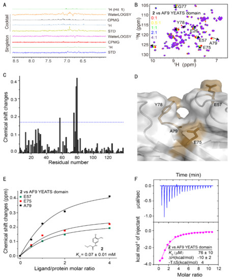 - Williamson, M.P. Using chemical shift perturbation to characterise ligand binding. Prog. Nucl. Magn. Reson. Spectrosc. 2013, 73, 1–16. [Google Scholar] [CrossRef]