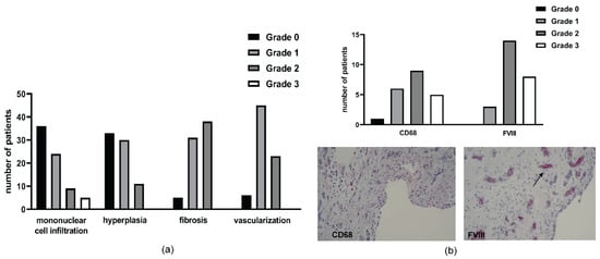 | Absence of Synovial Infiltrate (36 Patients) | Presence of Synovial Infiltrate (38 Patients) | p-Value | |