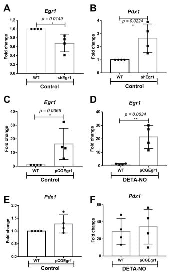 2.2. EGR-1 Has a Repressor Role on Pdx1 Expression in mESCs