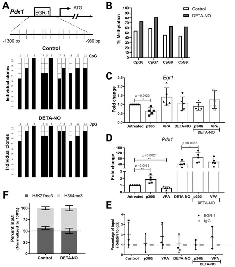 2.3. EGR-1 Binding to Pdx1 Promoter Is Dependent on DNA Methylation and Its Acetylation Status