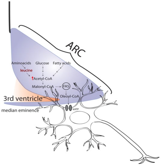 - Su, Y.; Lam, T.K.; He, W.; Pocai, A.; Bryan, J.; Aguilar-Bryan, L.; Gutierrez-Juarez, R. Hypothalamic leucine metabolism regulates liver glucose production. Diabetes 2012, 61, 85–93. [Google Scholar] [CrossRef]