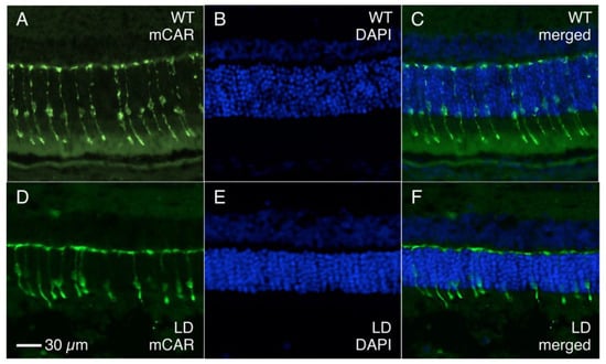 - Keeler, C. Retinal degeneration in the mouse is rodless retina. J. Hered. 1966, 57, 42–50. [Google Scholar] [CrossRef] [PubMed]
