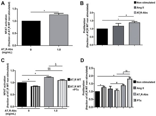2.1. Endothelial Cell Proliferation Is Induced by AT1R-Abs-Mediated Gq/11 Activation and Is Inhibited by Basal Gi Signaling