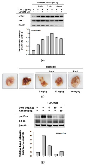 Loratadine was purchased from Tokyo Chemical Industry Co., LTD. (Tokyo, Japan). Carboxymethylcellulose (CMC), dimethylsulfoxide (DMSO), L-NAME, lipopolysaccharide, 3-(4,5-dimethylthiazol-2yl)-2,5-diphenyltetrazolium bromide (MTT), polyethyleneimine (PEI), Ranitidine, and stillen were obtained from Sigma Aldrich (St. Louis, MO, USA). DMEM, fetal bovine serum (FBS), penicillin/streptomycin, phosphate-buffered saline (PBS), RPMI 1640, trypsin, and TRIzol were acquired from GIBCO (Grand Island, NY, USA). HEK293T (CRL-1573) and RAW264.7 cells (CRL-2278) were products from American Type Culture Collection (Rockville, MD, USA). Luciferase constructs with AP-1 binding sites and CFP-TRIF, FLAG-MYD88, pcDNA, and Tag-2 constructs were used as previously reported [86]. Real-time and semiquantitative reverse transcriptase-polymerase chain reaction primers were bought from Macrogen Inc. (Seoul, Korea). All other chemicals were purchased from Sigma. Total and phospho antibodies for the MAPK family were obtained from Cell Signaling Technology (Beverly, MA, USA) and Santa Cruz Biotechnology (Santa Cruz, CA, USA).