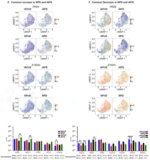 2.2. Identification of Distinct Cell Populations in NP and iAF of Non-Degenerating and Degenerating Discs