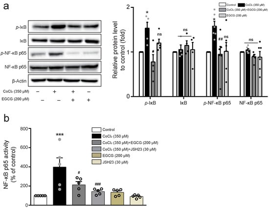 2.3. EGCG Inhibits NF-κB Activity in CoCl2-Stimulated BV2 Cells