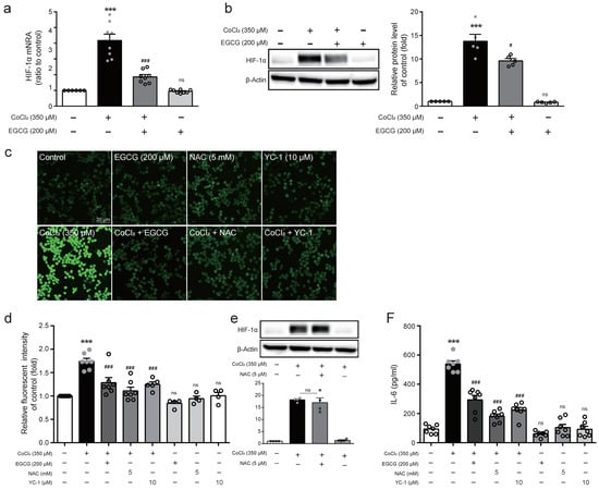 2.4. EGCG Attenuates HIF-1α Expression and ROS Production in CoCl2-Stimulated BV2 Cells