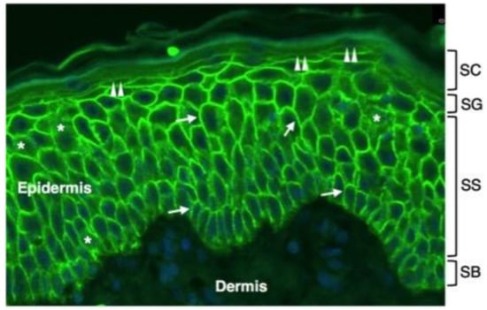 - Baroni, A.; Buommino, E.; De Gregorio, V.; Ruocco, E.; Ruocco, V.; Wolf, R. Structure and function of the epidermis related to barrier properties. Clin. Dermatol. 2012, 30, 257–262. [Google Scholar] [CrossRef] [PubMed]