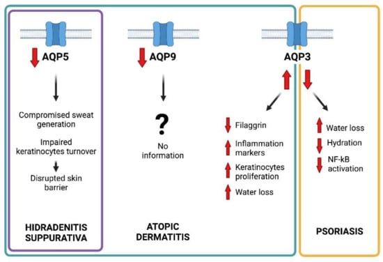 Chicago/Turabian StyleTricarico, Paola Maura, Donatella Mentino, Aurora De Marco, Cecilia Del Vecchio, Sabino Garra, Gerardo Cazzato, Caterina Foti, Sergio Crovella, and Giuseppe Calamita. 2022. "Aquaporins Are One of the Critical Factors in the Disruption of the Skin Barrier in Inflammatory Skin Diseases" International Journal of Molecular Sciences 23, no. 7: 4020. https://doi.org/10.3390/ijms23074020