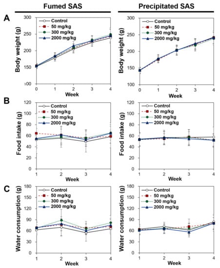 Chicago/Turabian StyleYoo, Na-Kyung, Su-Min Youn, and Soo-Jin Choi. 2022. "Oral Toxicokinetics, Tissue Distribution, and 28-Day Oral Toxicity of Two Differently Manufactured Food Additive Silicon Dioxides" International Journal of Molecular Sciences 23, no. 7: 4023. https://doi.org/10.3390/ijms23074023