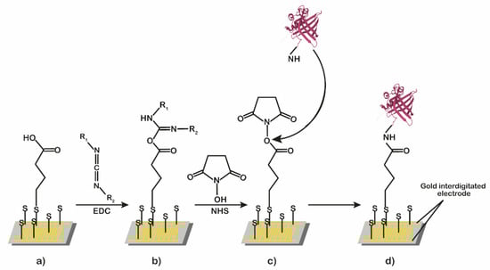 - Mirsky, V.M.; Riepl, M.; Wolfbeis, O.S. Capacitive monitoring of protein immobilization and antigen-antibody reactions on monomolecular alkylthiol films on gold electrodes. Biosens. Bioelectron. 1997, 12, 977–989. [Google Scholar] [CrossRef]