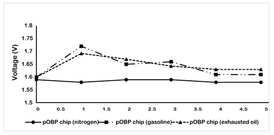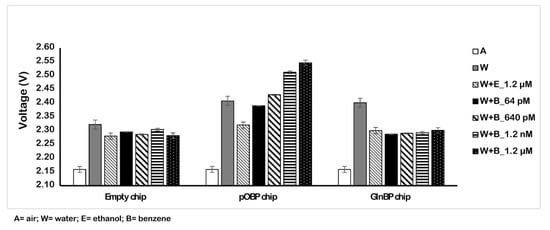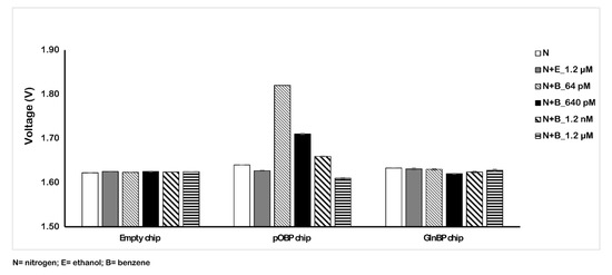 | pOBP chip | 2.159 ± (0.010) | 2.408 ± (0.011) | 2.320 ± (0.012) | 2.390 ± (0.001) | 2.430 ± (0.001) | 2.512 ± (0.002) | 2.546 ± (0.010) |