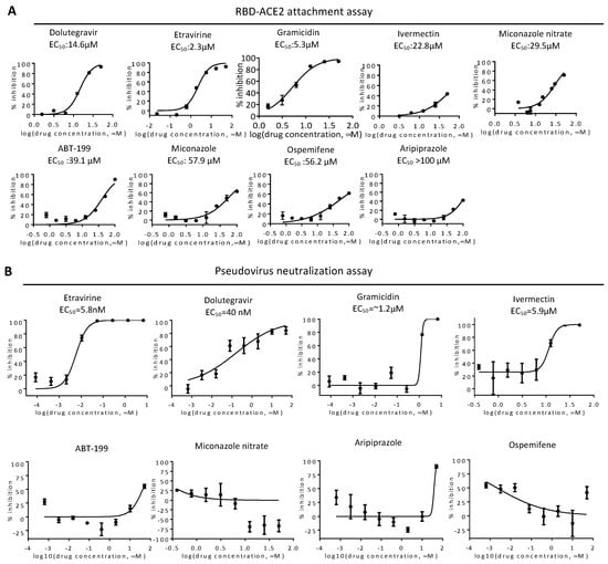 2.2. Entry Inhibitor Screening from an FDA-Approved Drug Library