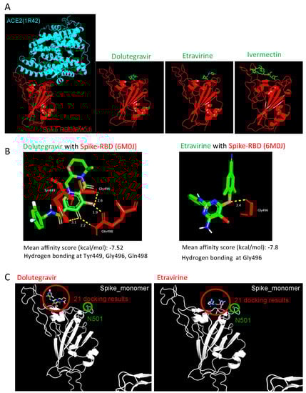 2.4. Etravirine and Dolutegravir Preferentially Interact with Spike RBD