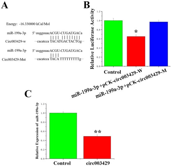 2.5. Circ003429 Adsorption and Binding of miR-199a-3p