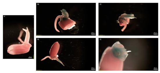 - Cervera, M. Histochemical and Fluorometric Assays for uidA (GUS) Gene Detection. In Transgenic Plants: Methods and Protocols; Peña, L., Ed.; Humana Press: Totowa, NJ, USA, 2004; pp. 203–213. [Google Scholar] [CrossRef]