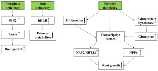 Taken together, the data presented in this Special Issue elucidate that plants undergo complex molecular processes and metabolic changes to adjust their growth under Pi-, Fe- and N-deficient stresses (Figure 1).