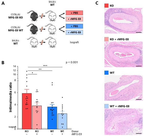 3.1. Absence of MFG-E8 Promoted Intimal Proliferation in the Transplanted Aorta
