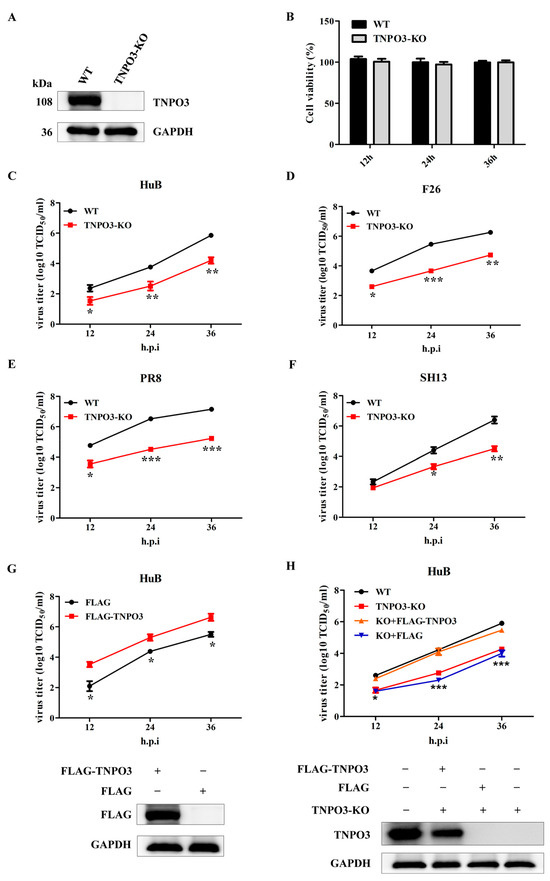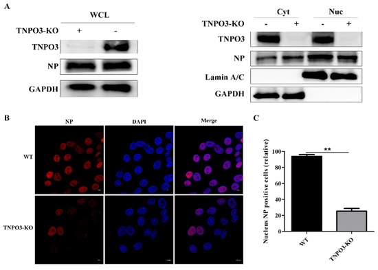 2.5. Knockout of TNPO3 Inhibits the Nuclear Import of IAV