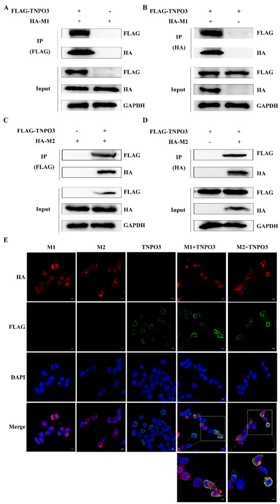2.6. TNPO3 Interacts and Colocalizes with Influenza Virus M1 and M2 Proteins