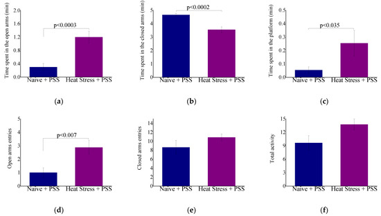 The brain has a critical role in receiving sensory information and developing the physiological response to any stress, including thermal stress. Studies have shown that HS has an extensive impact on brain structure and function and may lead to neurological deficits, including neuronal loss [5,6,7]. Subsequently, these neurological changes have been shown to result in behavioral changes including increases in anxiety [8] and decreases in both learning and memory [6,9].