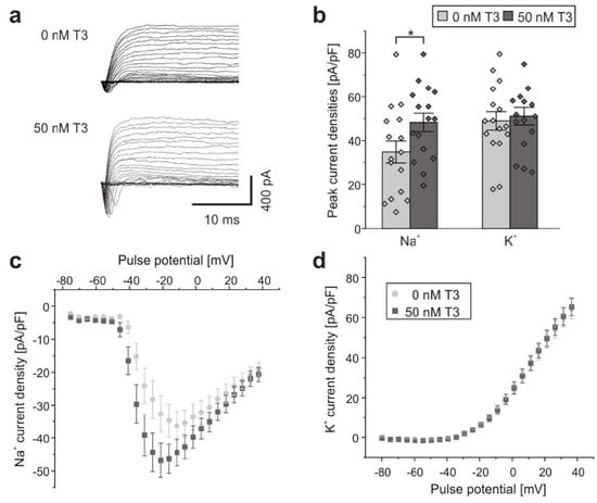 2.1. Effects of T3 on Na+ and K+ Current Densities