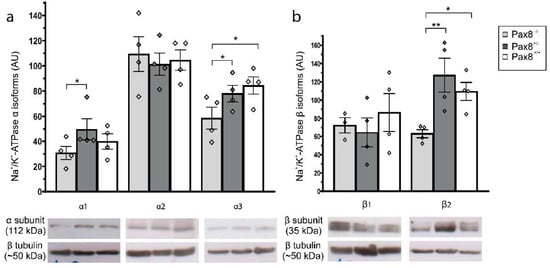 2.5. Expression of Na+/K+-ATPase Isoforms in Hippocampal Tissue from Pax8−/− Mice