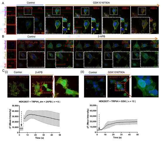 2.2. Exocytosis Is Mediated by Agonist Stimulation in Exogenous TRPV4-Expressing Cells