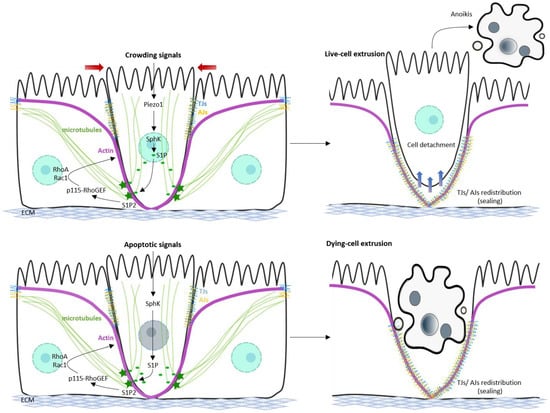 - Gudipaty, S.A.; Rosenblatt, J. Epithelial cell extrusion: Pathways and pathologies. Semin Cell Dev. Biol. 2017, 67, 132–140. [Google Scholar] [CrossRef]