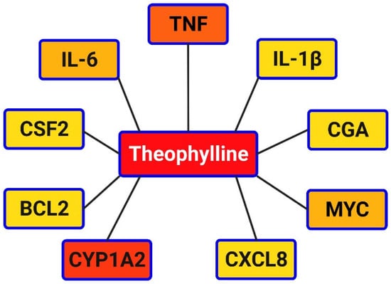 Theophylline is a well-known anti-inflammatory that exerts its effects through various mechanisms, with a notable history in the treatment of respiratory diseases with a strong inflammatory component, such as asthma and chronic obstructive pulmonary disease (COPD) and could therefore be beneficial in the treatment of COVID-19. In this sense, theophylline has been reported to have several interactions with different molecular targets (Figure 2 and Figure 3), that interact differently with several immunological routes once such targets are reached (Table 1).