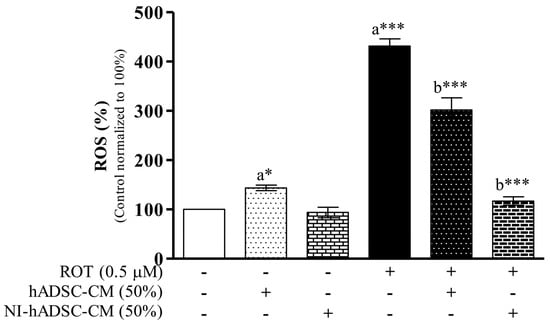 2.1. Effects of NI-hADSC-CM on ROT-Induced ROS Formation in SH-SY5Y Cells